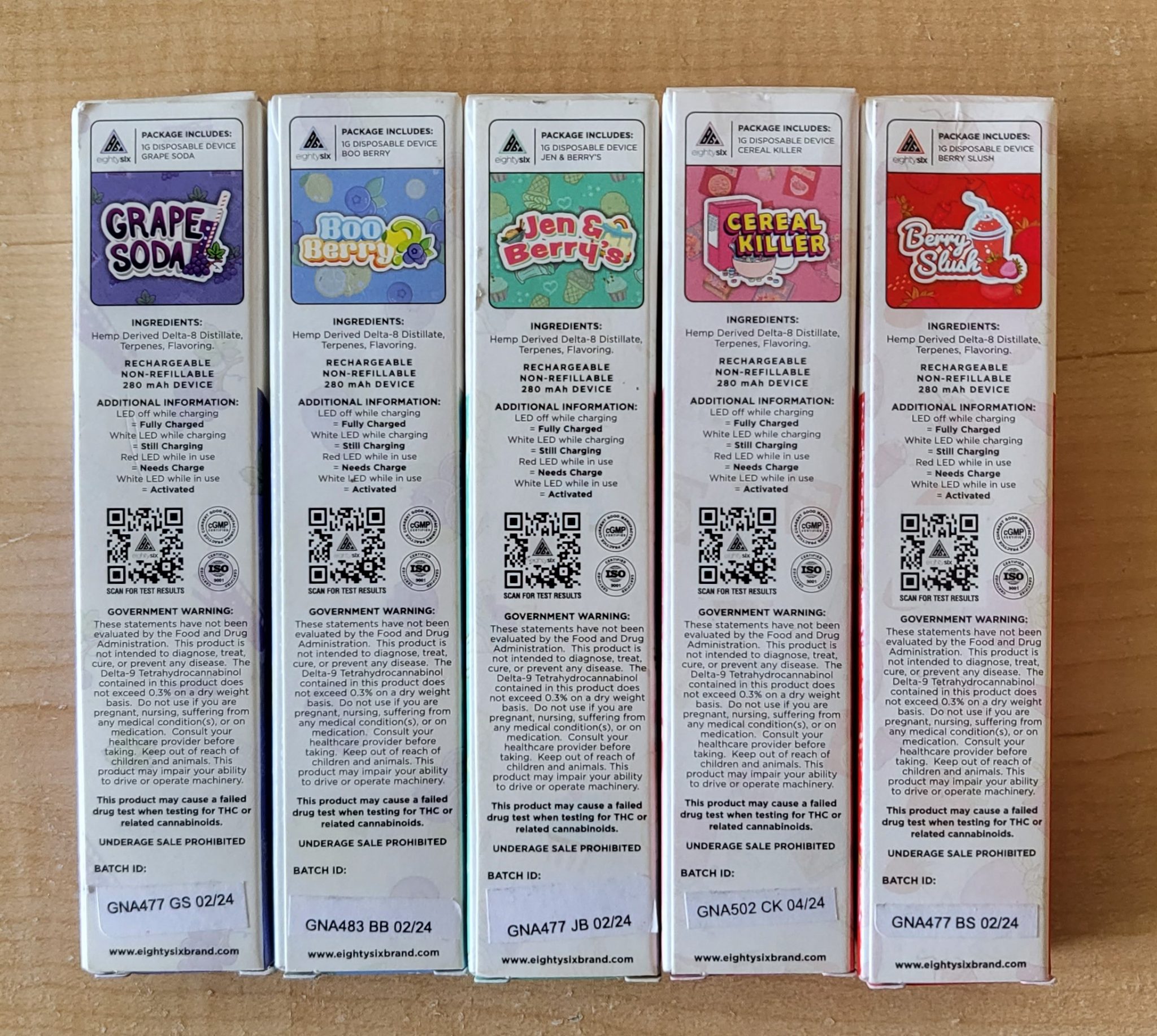Eighty Six Brand sent us five of their Delta-8 disposables