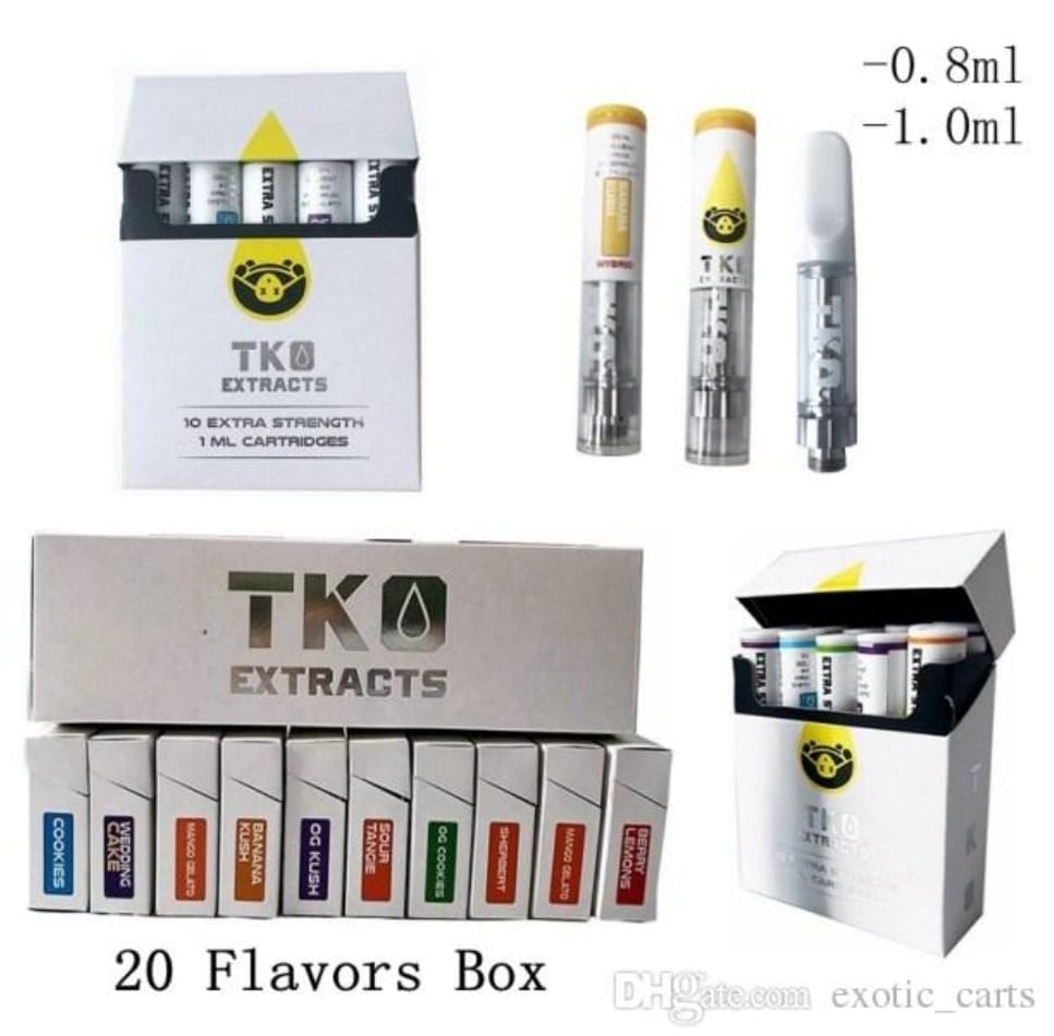 I just heard back from TKO products by email and they only make disposables now. This might be in response to the number of fakes out there. Basically, any cartridge out there that is a stand-alone cart that needs a battery attached to it is a fake TKO cart. Fake cartridges have been a constant issue in the cannabis industry.