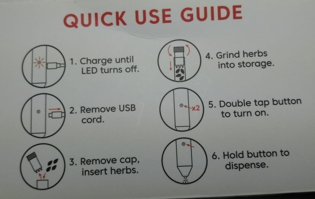 The main feature of the PenSimple grinder is really dispensing. You can hold weed in it then dispense when you take the cap off. The problem is the herbs are quite often not ground finely enough to get through the dispensing tip at the bottom.