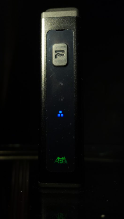 - The color of the LED that lights up the APX logo will indicate the current battery life. (green for 100% – 60% power level, orange for 60% – 20% power level, and red for 20% – 0% power level)