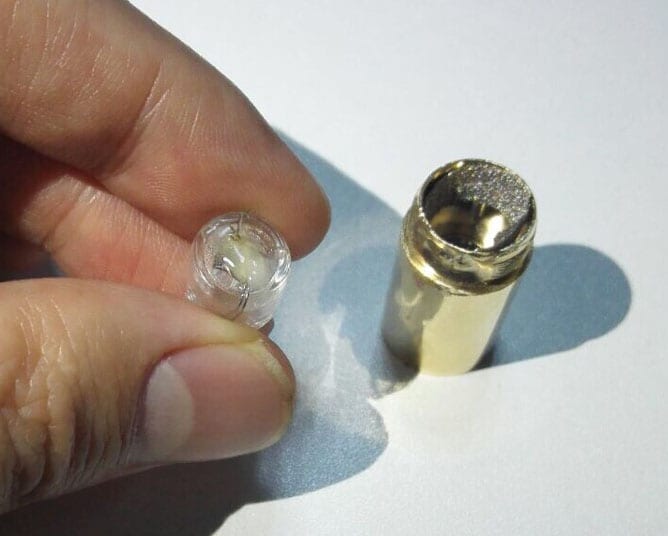We opened up the atomizers and found that the quartz double coil had a green mucus-colored blob of glue under the quartz cup inside the atomizer. This should not be the case on future Kandypens models. The ceramic plate also has a white blog of sealant under the heater. The coil according to the website is titanium. Their product site also says “No Wicks, Glues, or Dyes” and the statement was later removed. With their recent statements that claim may come back legitimately.
