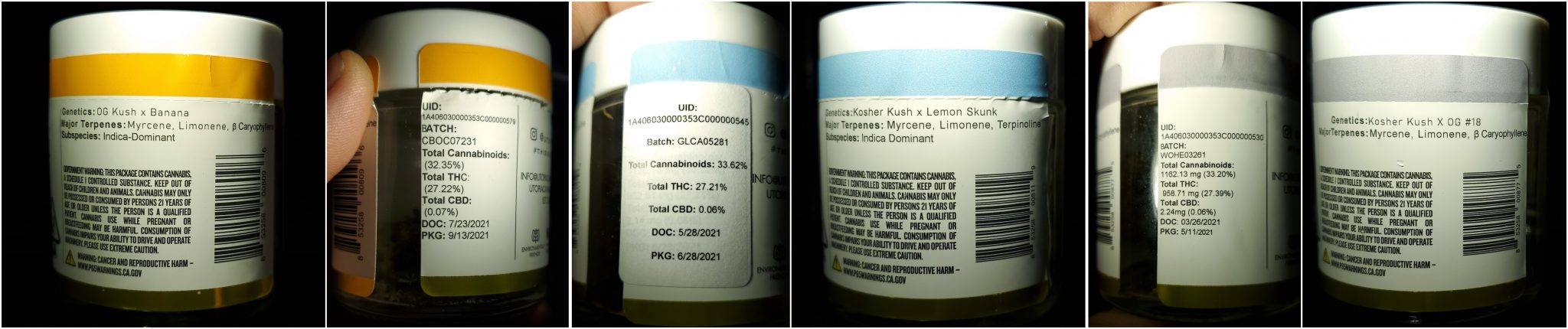 Lastly, I picked their C. Banana, which is their flagship award-winner. Larger and fluffier in appearance, Chiquita Banana is an Indica leaning hybrid cross between the quintessential OG Kush and Utopia’s very own Banana strain. The creamy aroma and flavor of C. Banana are nutty, earthy, and skunky with notes of banana, vanilla, cinnamon, and spices. Like Golden Lemons, this strain felt enjoyable for any time of the day. The total THC % of Chiquita Banana is 27.22%. The total CBD % is 0.07%, and the total cannabinoid % is 32.35%. The major terpenes of C Banana are listed as myrcene, limonene, and caryophyllene.